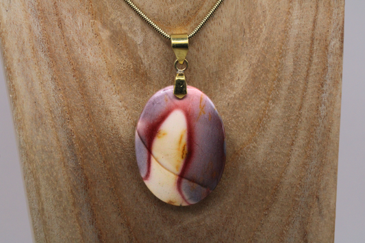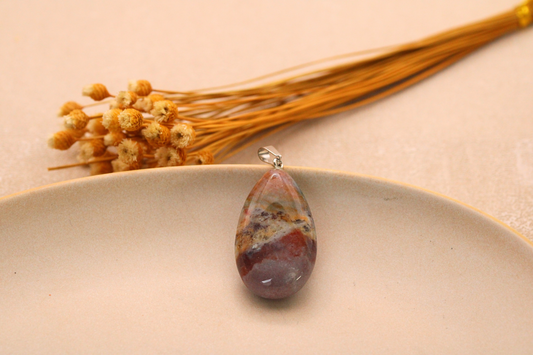 Pendentif en Jaspe Mokaïte Naturel et Laiton - Vitalité et Stabilité