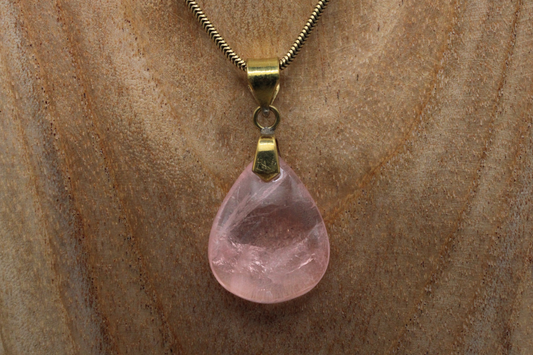 Pendentif en Quartz Rose Naturel et Laiton - Amour et Douceur