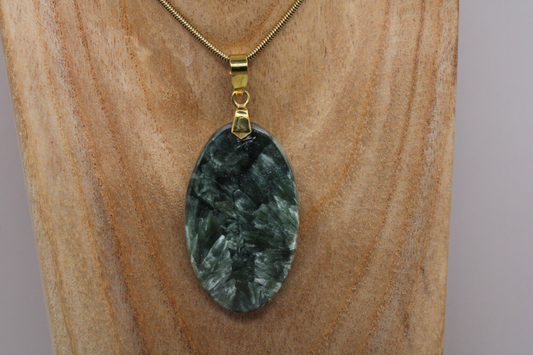 Pendentif en Séraphinite Naturelle et Laiton - Élévation et Guérison